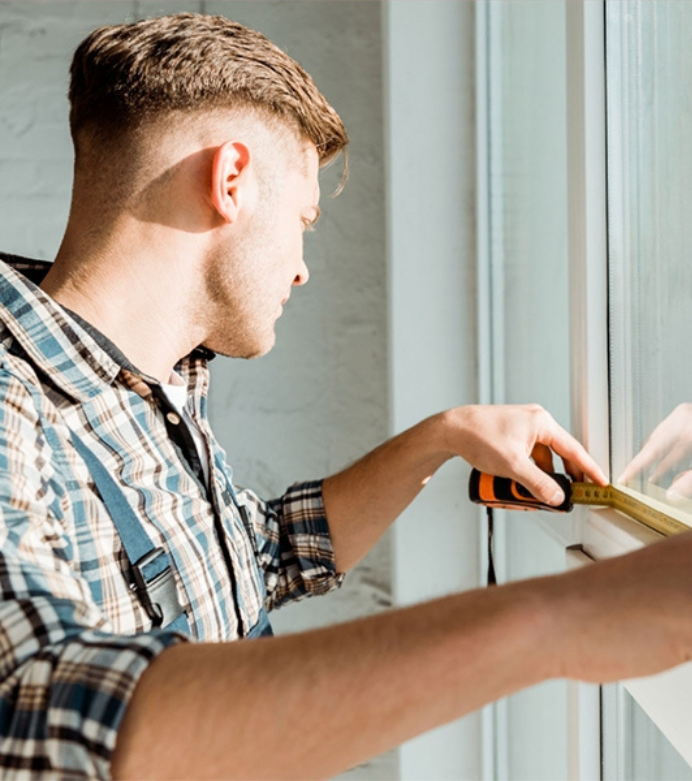 A medição do ambiente é realizada para personalizar os produtos, seguidos pela apresentação de um orçamento detalhado.